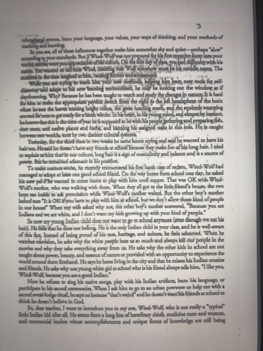 The principal of Wind-Wolfs school recognizes the need for multicultural education. See the answer See the answer done loading. An Indian Fathers Plea.