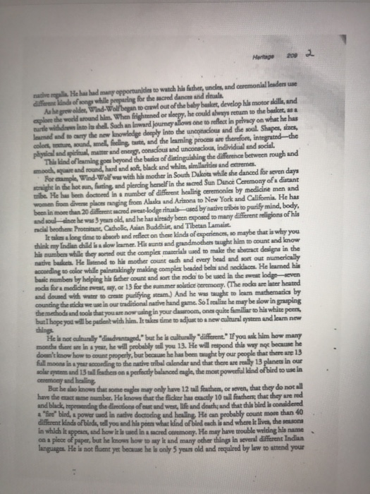 The father was explains to the teacher their culture and the different things his son experienced when he was young. What might these responses. Wind-Wolf is a 5th grade student.